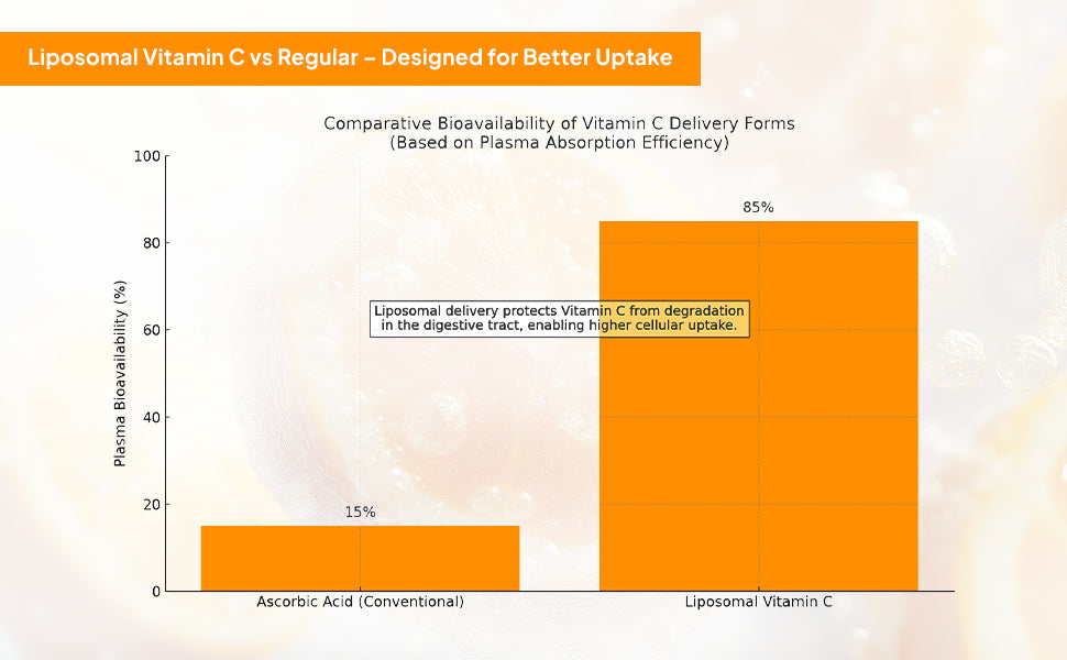 Liposomal delivery helps protect Vitamin C through digestion, allowing more of it to be absorbed into the bloodstream.