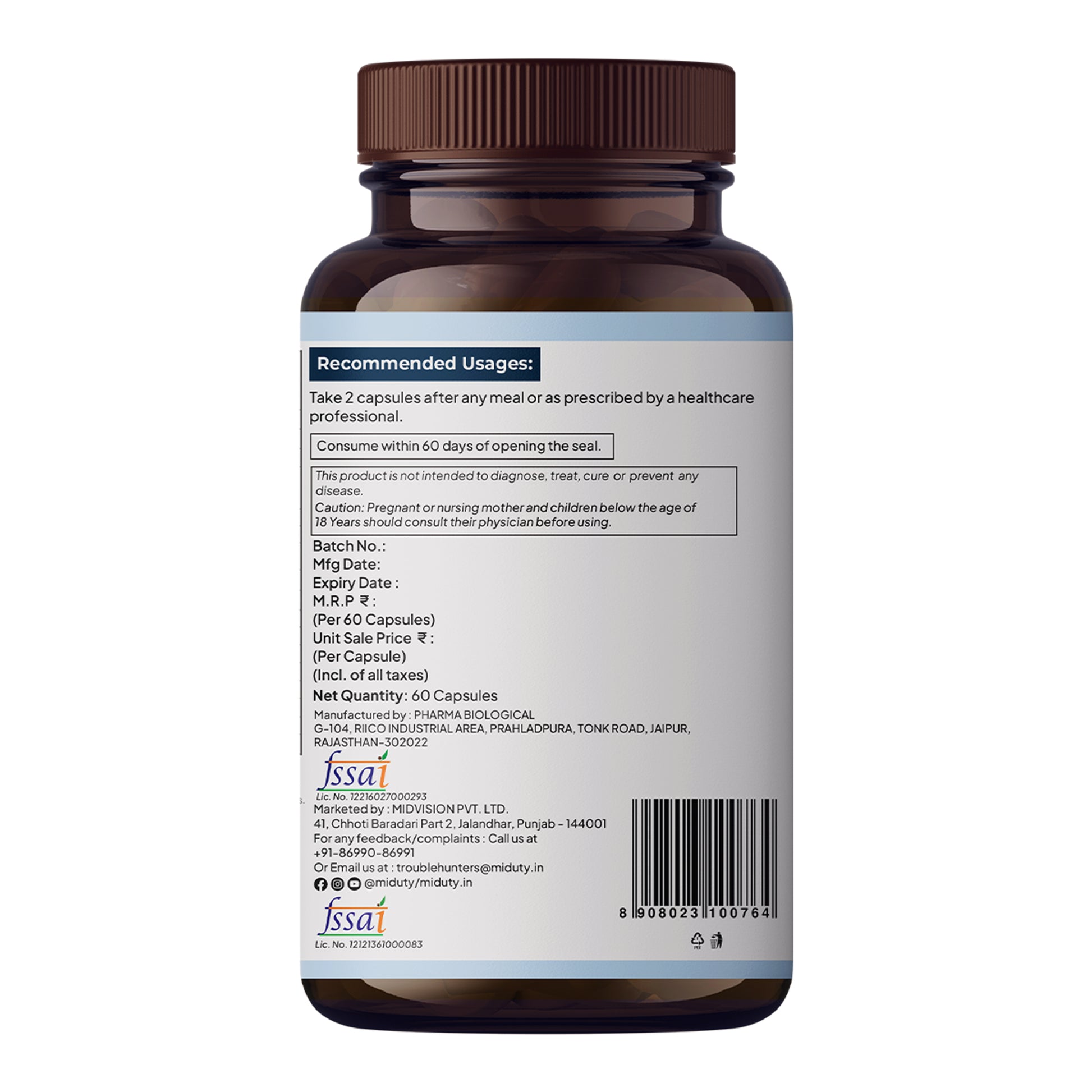 Miduty: Botanical Ingredients in One FormulaMiduty contains a blend of NAC, Quercetin, Stinging Nettle, Licorice Extract, Mullein Leaf Extract, Vitamin...