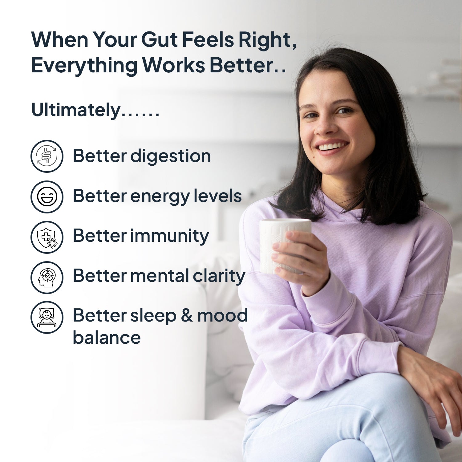 70% of the immune system resides in our gut. [1] When gut flora is balanced, we experience better digestion, stronger immunity, and fewer infections. But poor diet, antibiotics, and processed foods often disrupt this delicate balance.